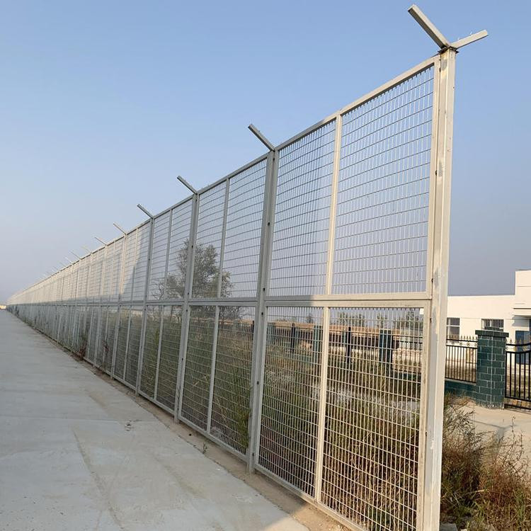 監獄鋼網墻有在平地安裝的也有在圍墻上二次安裝的,可以加高圍墻高度,也可以用作放風網使用,是由尖銳的不銹鋼板或鍍鋅鋼板刀片和普通圍欄組成的,其材質堅硬,高強度,高張力,不易觸摸。因監獄鋼網墻能起到很好的阻嚇隔離作用,**常被使用在監獄、看守所、軍事基地等高安全場所。