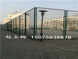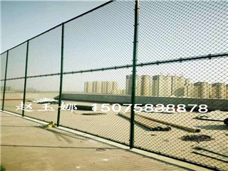 學校操場足球場圍網常用規格: 1,包塑絲經 3.8mm 2,網孔 50mm X 50mm 3,尺寸:3000mm X 4000mm4,立柱:直徑60/2.5mm鋼管 5,橫柱:直徑48/2mm鋼管焊接 6,連接方式:焊接 7,防腐處理:熱浸塑、靜電噴塑等。