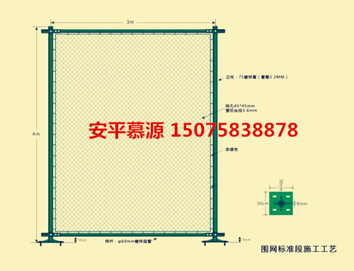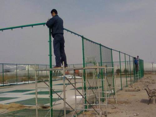 ①室外籃球場圍網施工工序為:底板固定----網立柱鏍栓安裝----頂、底橫桿鏍栓安裝固定---掛網----網門安裝。
