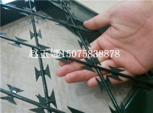 刀片刺網(wǎng)是近年在監(jiān)獄應(yīng)用比較廣的一種防護隔離網(wǎng),可以用在外警戒區(qū)隔離網(wǎng)、巡邏道加高隔離網(wǎng)、內(nèi)5米警戒區(qū)隔離網(wǎng)以及各個功能區(qū)隔離網(wǎng)。是一種新型的在防御領(lǐng)域較突出的圍網(wǎng)。下邊我們介紹一款常用的刀片刺網(wǎng)隔離網(wǎng)的規(guī)格型號及工藝要求,這也是監(jiān)獄中采用的比較主流的規(guī)格型號。